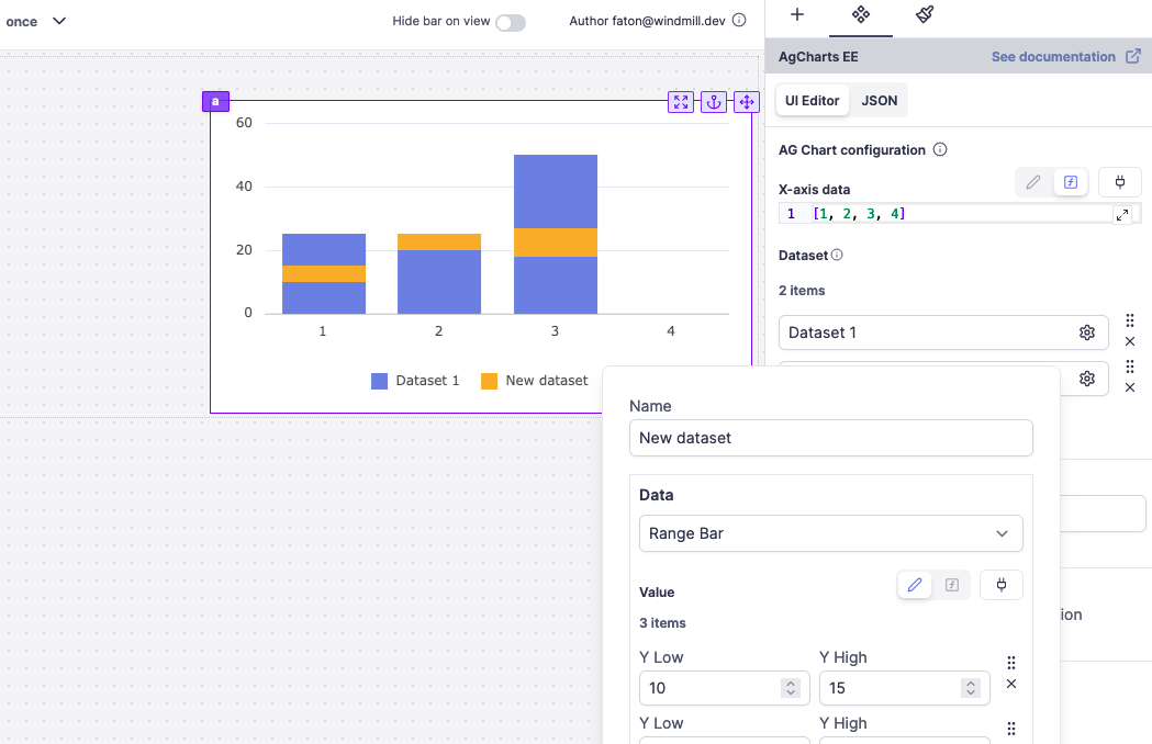 - Diverse Chart Types: Supports multiple chart types including Bar, Line, Scatter, and both Area & Range Bar that are exclusive to Enterprise Edition (because Ag charts key needed).