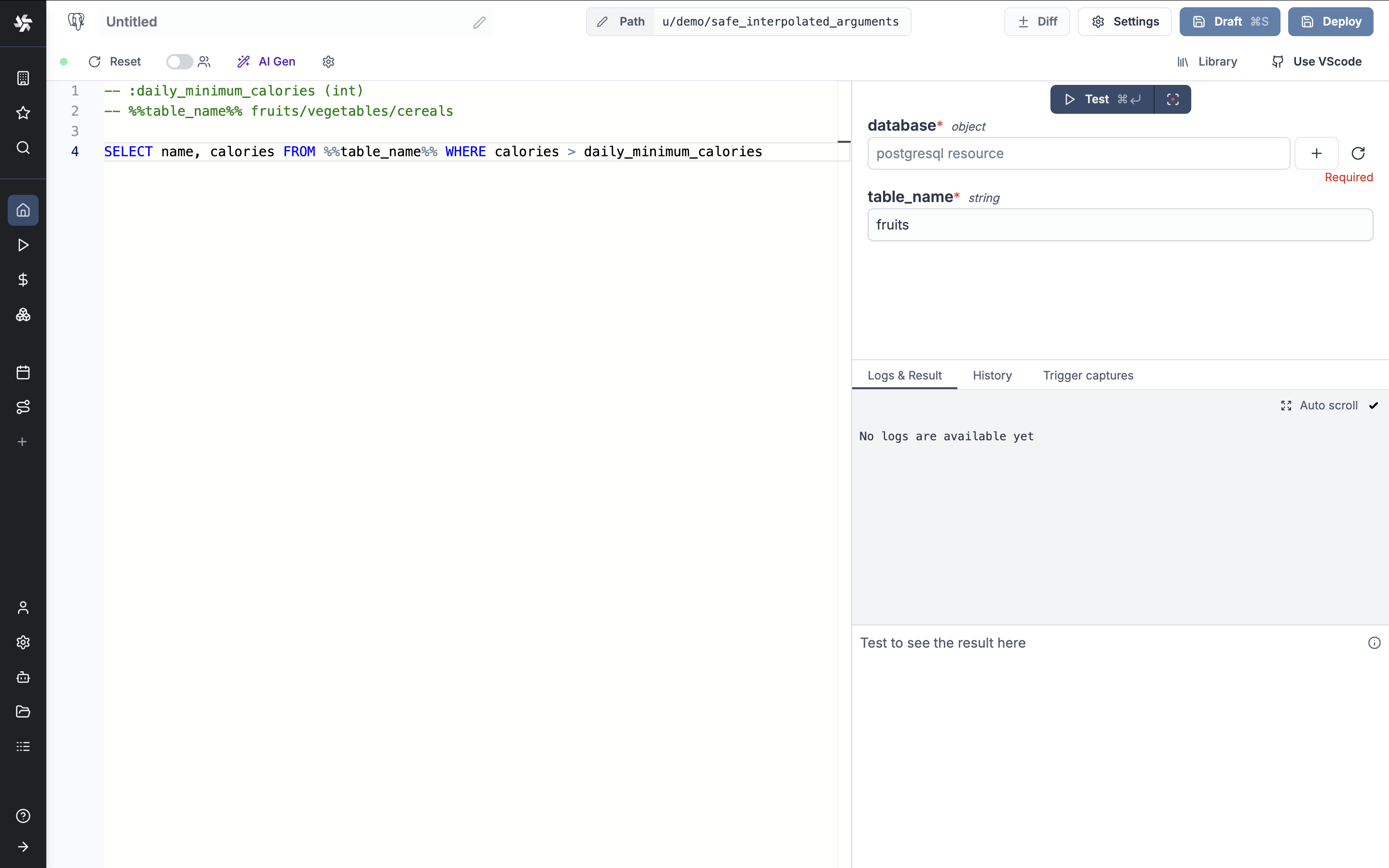 Pin database resource path directly within a SQL script instead of filling it through the UI.