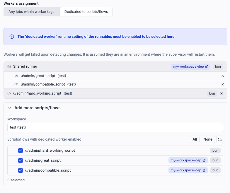 Dedicated worker scripts sharing the same workspace dependency and language now automatically run in a single long-lived subprocess.